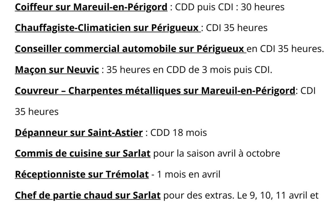 • Les offres d’emplois